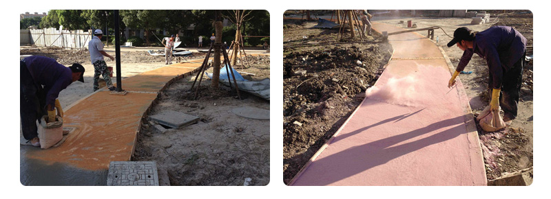 步骤2→撒布颜色强化剂材料