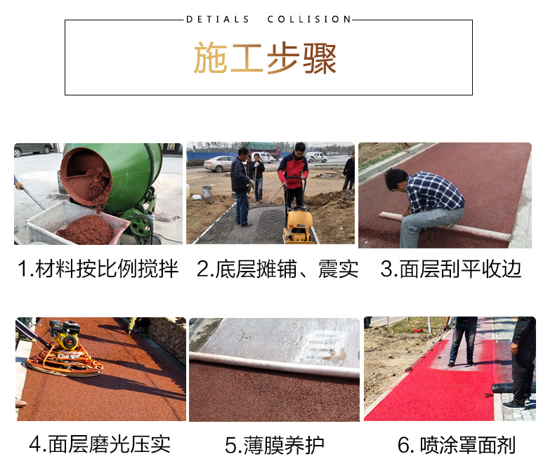 透水混凝土组成材料:颜色料、透水砼粘结料/增强剂/胶粉、密封罩面剂三种材料组成。