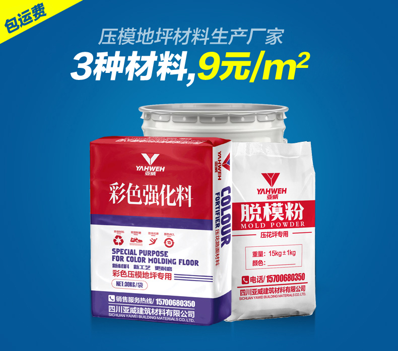 亚威彩色脱模粉:15kg/袋 防水彩袋包装(用量:0.15kg/平方米)