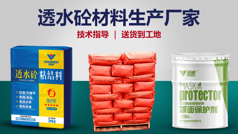 透水混凝土组成材料:颜色料、透水砼粘结料/增强剂/胶粉、密封罩面剂三种材料组成。